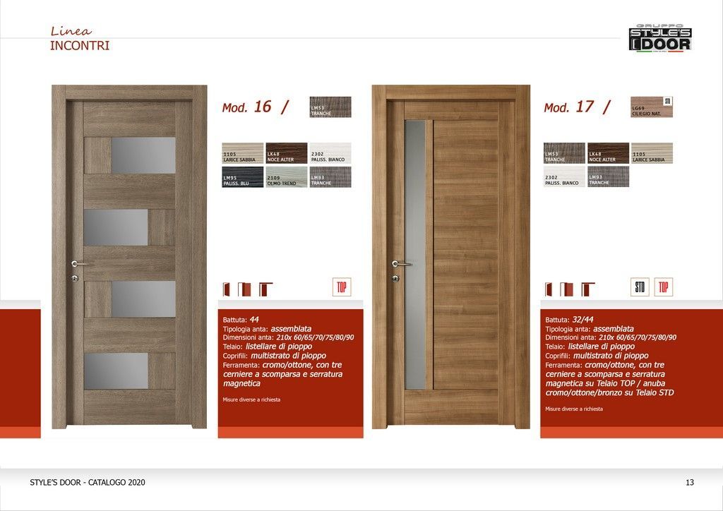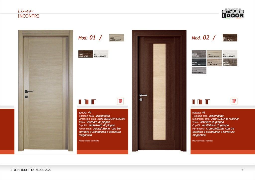 Le porte Style's Door si differenziano fra di loro per struttura e finitura.